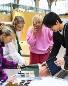 Before starting embroidery, special software is used to turn the client’s logo into a DST file, a step known as digitization. The stitch direction, thread color changes, and stitch density are carefully planned to avoid fabric bunching from excessive stitches, ensuring the right balance. A digital preview is then created for client approval. Once approved, the bag is prepared with a stabilizer to keep the fabric in place and ensure a clean design. The embroidery machine then stitches the logo onto the bag, bringing the design to life with colorful threads. Bright logos on dark fabric especially stand out.