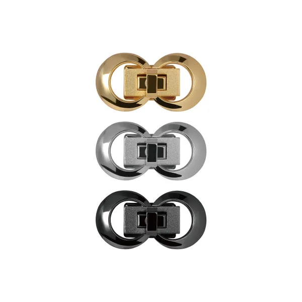 Eight Shaped Metal Bag Buckle is crafted from durable zinc alloy, ensuring long-lasting strength and stability. The unique eight-shaped structure is formed by two interlocking metal rings, delivering both visual appeal and functional reliability. Its turn-lock mechanism offers secure fastening, making it safe and sturdy for everyday use. With multiple plating color options available, brands can customize the buckle to match different bag styles. It is suitable for various handbag designs, from casual to premium collections.